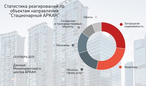 В сентябре 2025 Мониторинговый центр АРКАН зафиксировал 296 инцидентов с вызовом сил реагирования на объекты недвижимости.