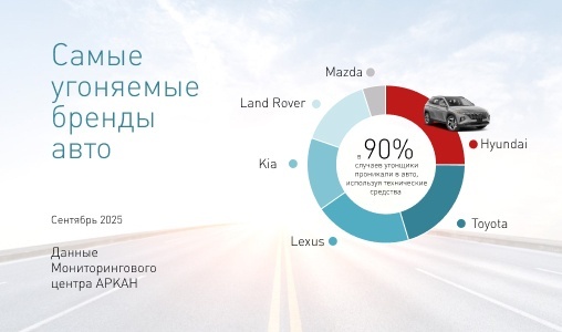 В сентябре 2025 Мониторинговый центр АРКАН зафиксировал 20 попыток угона.